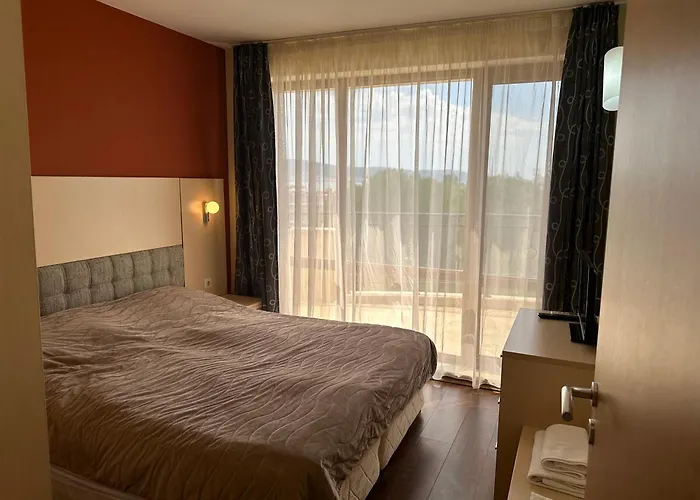 Apartmán se nachází ve čtvrti Sunny Beach Beachfront města Sluneční pobřeží. Nesebar - Jižní pláž je necelých 10 minut jízdy autem. Bar Bar Che je jen asi 7 minut daleko od apartmánu.